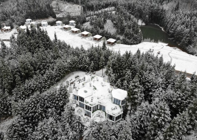 石柱的雪还有静的玩法。你可以到重庆图书馆 冷水.风谷分馆,“虚度”一段美好时光。在蜂巢式 全通透的 森林书屋里,或坐或依,或发发呆,或捧书一卷,沏香茗一盏,间或抬头,于袅袅茶香中,赏窗外纷飞的雪,和在风雪中旋转的巨大风车……
